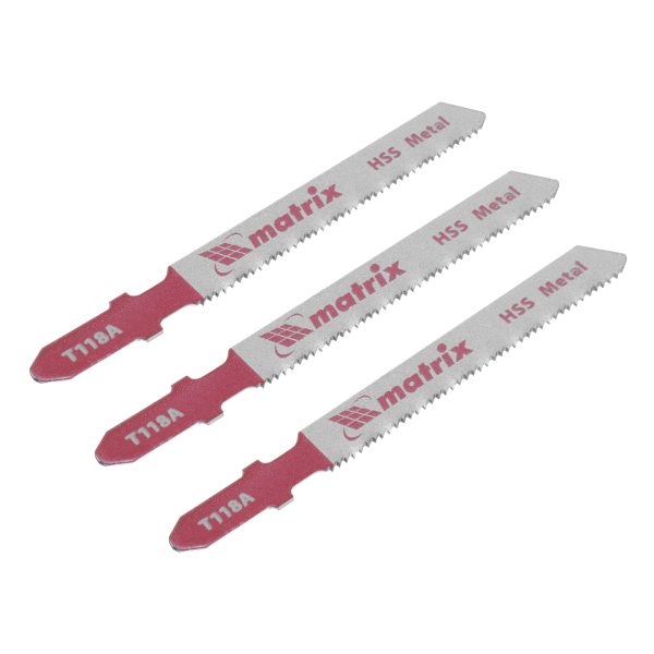 Полотна по металлу T118A Matrix 78207 с рабочей длиной 50 мм и шагом зубьев 1,2 мм, из стали HSS, — комплект из 3 шт. для установки на электролобзик. Успешно справляются с распиливанием алюминиевых профилей и металлических заготовок толщиной 1-3 мм. Имеют Т-образный хвостовик, а значит, подходят для большинства моделей электролобзиков. Пилки могут использоваться в профессиональной и бытовой сфере.