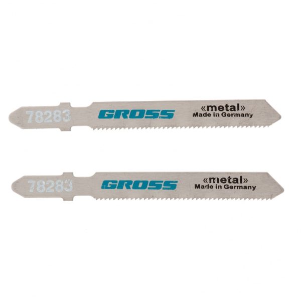 Полотна для электролобзика Gross Profi 78283, 2 шт. (3111F — T118AF), рассчитаны на пильные работы по металлу. Полотна высокого качества относятся к профессиональному классу инструмента. За счет длины 100 мм и толщины 1,27 мм они могут распиливать заготовки толщиной 1,5-3 мм.