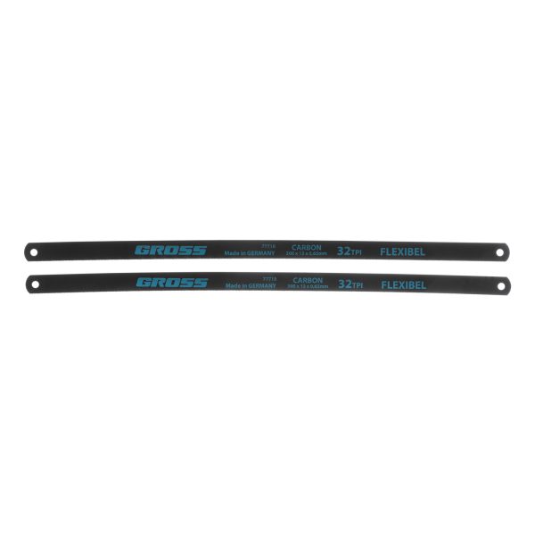 Полотна для ножовки по металлу Gross 77718 длиной 300 мм, с шагом зубьев 32TPI, выполненные из стали Carbon, 2 шт., пригодятся частным мастерам и профессионалам при проведении слесарно-монтажных работ. Они используются для реза стальных, металлических изделий, пенополистирола и пластика. Полотна могут быть установлены на ножовки 77600, 77602, 77604 или другие модели соответствующего типа.