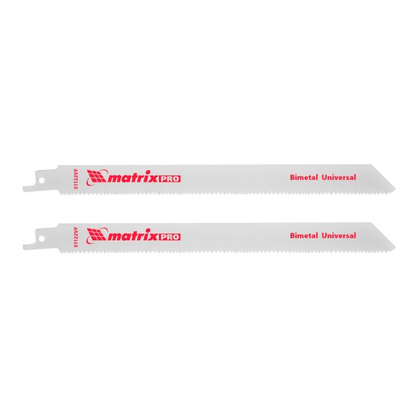 Универсальные полотна для сабельной пилы S1122VF Matrix PRO 782002 с переменным шагом зубьев 1,8-2,5 мм, биметаллические (Bimetal), 2 шт. в упаковке, имеют рабочую длину 200 мм и позволяют быстро и качественно распиливать заготовки из древесины, пластика, листового металла, фанеры, ДСП, справляются также с алюминиевыми профилями и древесиной с гвоздями. В зависимости от материала глубина распила составляет от 3 до 175 мм. Полотна пригодятся на строительной площадке, во время ремонта, демонтажа различных конструкций, будут полезны дома и на даче.