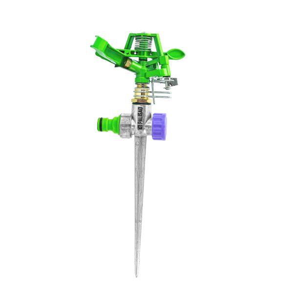 Импульсный латунный разбрызгиватель Palisad с регулировкой угла горизонтального распыления и дальностью разбрызгивания до 26 м, предназначен для стационарного полива на участке площадью до 500 кв. м. Изменяя угол струи и дальность разбрызгивания, можно задать конкретный сектор орошения. Устройство пригодится для ухода за зелеными насаждениями на даче и прочих озелененных территориях.