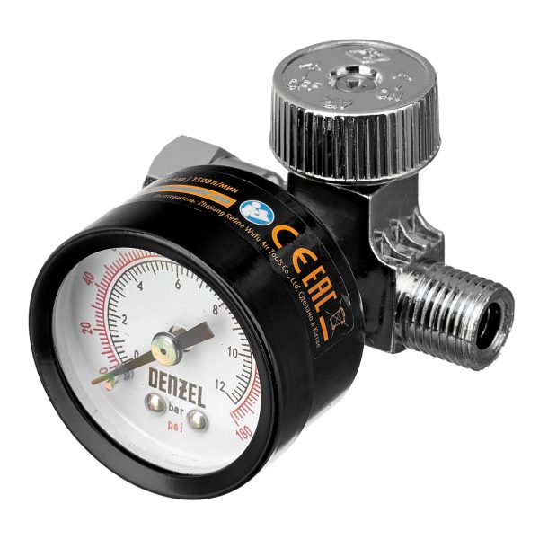 Регулятор Denzel K1500 57001 с присоединительным размером 1/4″ имеет пропускную способность 1500 л/мин и предназначен для установки и поддержания на заданном уровне давления до 12 бар. Подключается к компрессору и позволяет обеспечить эффективную работу пневмоинструмента. Оптимален для использования совместно с краскораспылителем.