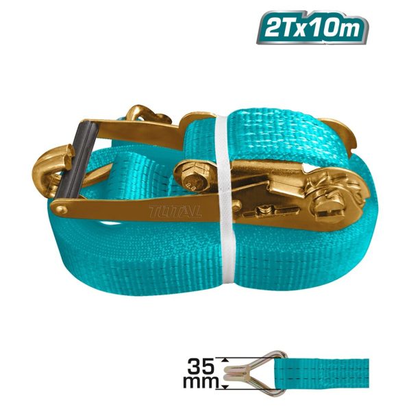 - Ремень-стяжка с храповым механизмом 2 т 10 м TOTAL THTRS2101 предназначен для крепления различных грузов при перевозке, перемещении, хранении.