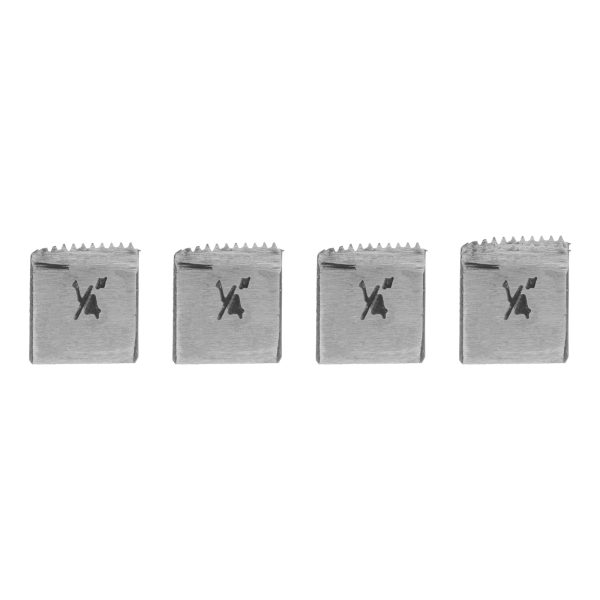 Резцы для клуппов 77360, 4 шт. в упаковке, — сменные режущие элементы для нарезания наружной правой резьбы диаметром 1/4″ на трубах. Применяются для прокладки трубопроводов различного назначения.