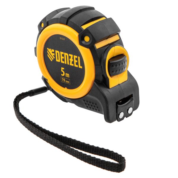 Рулетка Denzel 31521 с автоматической фиксацией полотна размером 5 м х 19 мм, с нейлоновым покрытием, магнитным зацепом и двухсторонней разметкой, предназначена для измерения расстояний и определения габаритов различных предметов. Лента автоматически фиксируется в вытянутом положении, что упрощает работу. Рулетка будет полезна во время строительных и ремонтных работ.