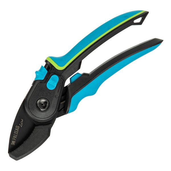 Секатор с наковальней Palisad LUXE длиной 220 мм, с регулировкой захвата и трехкомпонентными рукоятками, предназначен для обрезки сухих и увядших веток толщиной до 24 мм. Лезвие с тефлоновым покрытием и прецизионной заточкой отсекает ветку быстро и максимально щадяще для растения. Увеличенный шарнир, усиливающий сжатие на 10%, экономит силы пользователя во время длительной работы. Плотность примыкания лезвий можно отрегулировать вращением винта. Инструмент будет полезен для ухода за растениями на даче и в саду.