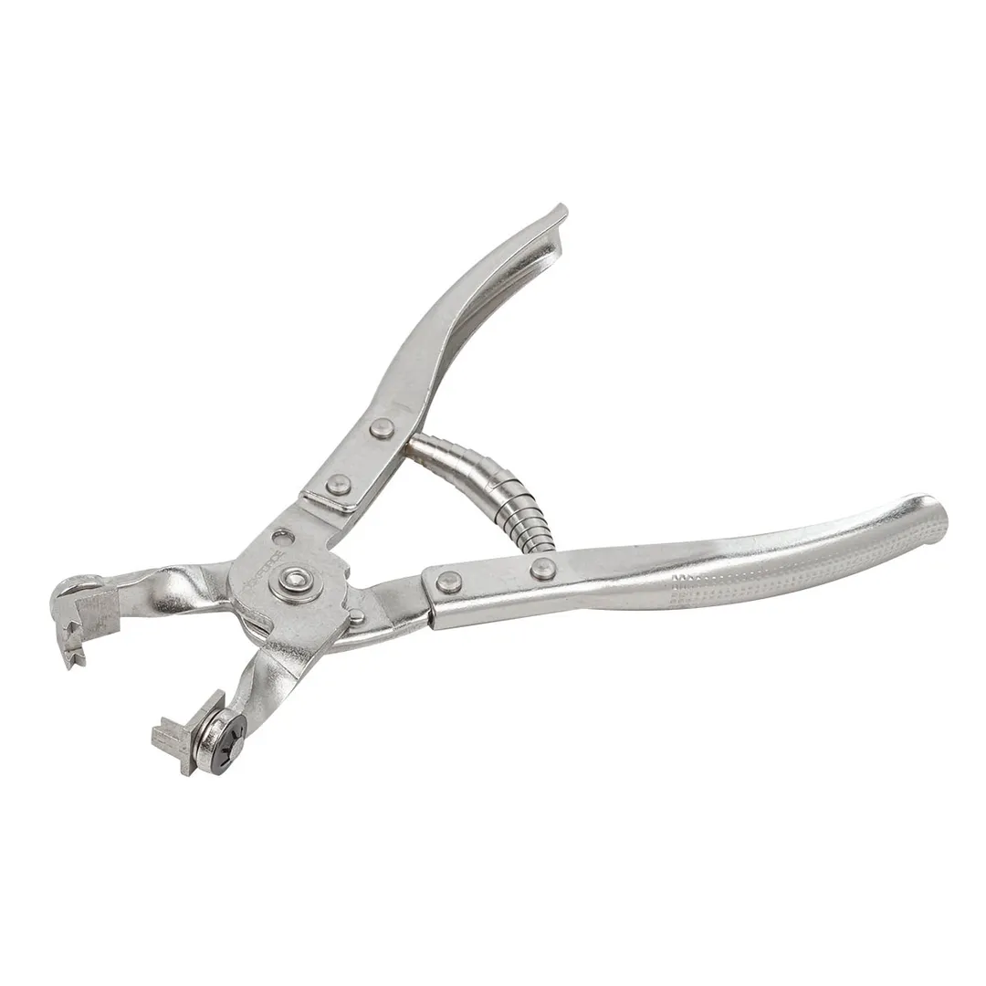 Клещи для самозажимных, пружинных хомутов загнутые обеспечивают быстрое и удобное снятие хомутов без повреждения шлангов или труб. Щипцы для самозажимных (пружинных) хомутов предназначены для работы с многоразовыми самозажимными (пружинными) хомутами топливных, масляных и водяных шлангов. Ширина губок 30 мм. Трещоточный механизм позволяет фиксировать хомут в разжатом состоянии. Инструмент имеет удобные обрезиненные рукоятки для удобства использования. Подходит для большинства типовых самозажимных (пружинных) хомутов. Применим как в автомобилях, так и в быту. Благодаря своим пружинным свойствам, рессорные хомуты особенно пригодны для систем соединения шланг — раструб, подвергаемых сильным колебаниям температуры. После монтажа пружинный хомут обеспечивает постоянное самоподтягивание. Даже при низких температурах достигается достаточно большая радиальная зажимная сила. Щипцы станут незаменимым помощником и отличным подарком на любой праздник для каждого мужчины. Отличаются высокой прочностью и надежностью, что д