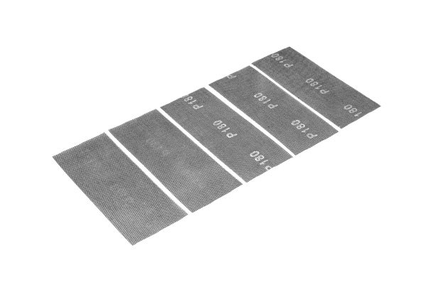 Абразивная сетка Сибртех 751327 размером 115 х 280 мм, с зернистостью P 180, 5 шт. в упаковке, предназначена для чистовой обработки шпаклеванных, деревянных и металлических поверхностей. Среднезернистый абразив P 180 снимает тонкий слой материала и позволяет подготовить поверхности к окрашиванию или поклейке обоев, удалить лак, краску, заусенцы и ржавчину. Полотно из прочного гибкого стекловолокна отличается износостойкостью. Сетка крепится на брусок или сеткодержатель.