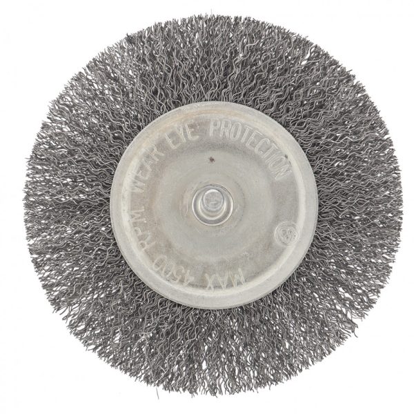 Плоская щетка для дрели Сибртех 744507 диаметром 100 мм, со шпилькой и щетиной из витой проволоки 0,3 мм, используется для щадящей обработки металлических, деревянных и пластиковых поверхностей. Удаляет загрязнения, ржавчину, старые лакокрасочные покрытия. Благодаря плоской форме щетка идеально подходит для очистки труднодоступных мест, пазов, изгибов, внутренних углов. Хвостовик диаметром 6 мм устанавливается в патрон дрели. Рекомендуемая скорость вращения 4500 об/мин. Во время работы следует использовать средства индивидуальной защиты. Щетку применяют во время строительства, ремонта, а также в быту.