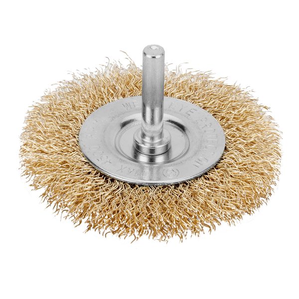 Плоская щетка для дрели Matrix 74446 диаметром 60 мм, со шпилькой и щетиной из латунированной витой проволоки, предназначена для бережной очистки металлических, деревянных, пластиковых поверхностей от загрязнений, старых лакокрасочных материалов и ржавчины. Витая проволока диаметром 0,3 мм проникает в труднодоступные места: пазы, углы, изгибы, узкие участки. Насадку применяют для придания поверхности нужной шероховатости или подчеркивания структуры материала. Хвостовик диаметром 6 мм устанавливается в патрон электродрели, способной работать на рекомендуемой скорости 4500 об/мин. Во время работы следует использовать защитные очки, респиратор, наушники, спецодежду и обувь.