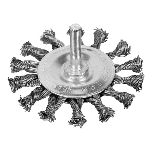 - Эффективность и износостойкость — щетина из крученой стальной проволоки диаметром 0,5 мм успешно справляется с толстым слоем ржавчины или лакокрасочного покрытия.