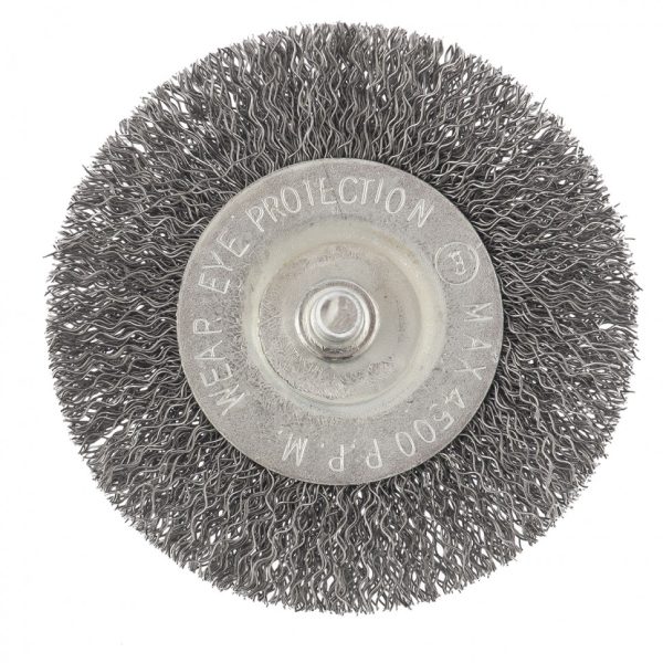 Плоская щетка для дрели Сибртех 744487 диаметром 75 мм, со шпилькой и щетиной из витой проволоки 0,3 мм, используется для щадящей обработки металлических, деревянных и пластиковых поверхностей. Удаляет загрязнения, ржавчину, старые лакокрасочные покрытия. Благодаря плоской форме щетка идеально подходит для очистки труднодоступных мест, пазов, изгибов, внутренних углов. Хвостовик диаметром 6 мм устанавливается в патрон дрели. Рекомендуемая скорость вращения 4500 об/мин. Во время работы следует использовать средства индивидуальной защиты. Щетку применяют во время строительства, ремонта, а также в быту.