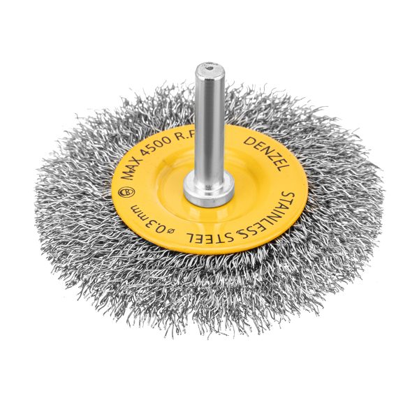 Плоская щетка Denzel 744603 диаметром 75 мм, со шпилькой и щетиной из нержавеющей витой проволоки, предназначена для выполнения зачистных работ. Позволяет обработать поверхность, снять тонкий слой краски, ржавчины, удалить загрязнения. Подходит для твердых материалов: стали, в том числе нержавеющей, древесины, пластика и т.д. Плоская щетка оптимальна для зачистки поверхностей со сложным рельефом, имеющих углы, пазы и изгибы.
