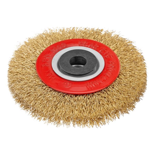 Плоская щетка Matrix 74658 диаметром 100 мм, с щетиной из латунированной витой проволоки, устанавливается на точило с посадочным размером 20 мм. Рекомендуемая скорость вращения — не более 6000 об/мин. Витая проволока позволяет в щадящем режиме зачистить тонкий слой ржавчины и лакокрасочных покрытий, удалить различные загрязнения с небольших или хрупких деталей. Благодаря плоской форме щетка подходит для обработки труднодоступных мест.