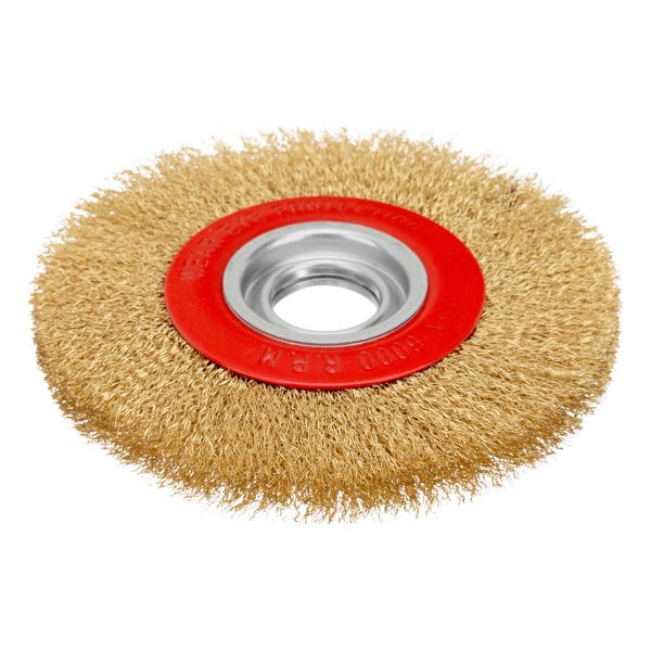 Плоская щетка Matrix 74661 диаметром 175 мм, с щетиной из латунированной витой проволоки, устанавливается на точило с посадочным размером 32 мм. Рекомендуемая скорость вращения — не более 6000 об/мин. Витая проволока позволяет в щадящем режиме зачистить тонкий слой ржавчины и лакокрасочных покрытий, удалить различные загрязнения с небольших или хрупких деталей. Благодаря плоской форме щетка подходит для обработки труднодоступных мест.