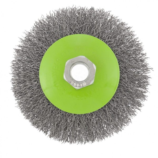 - Быстрая установка и замена насадки — щетка крепится на вал УШМ при помощи гайки М14.