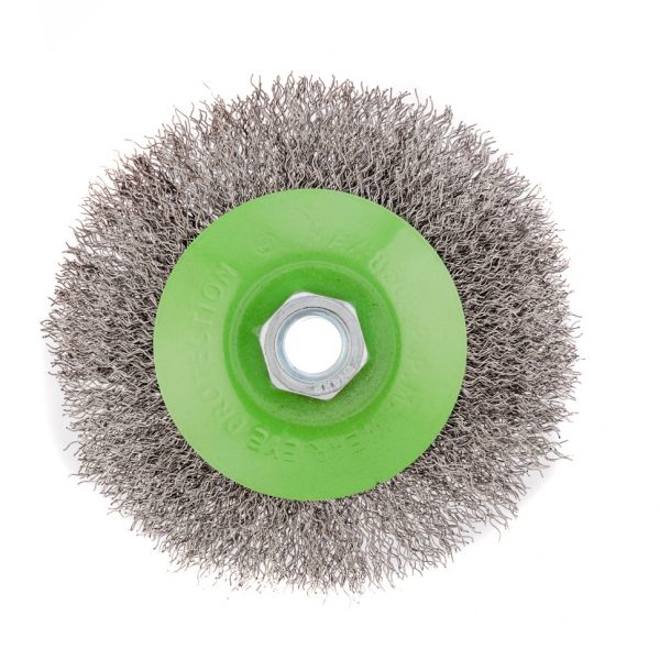 - Быстрая установка и замена насадки — щетка крепится на вал УШМ при помощи гайки М14.