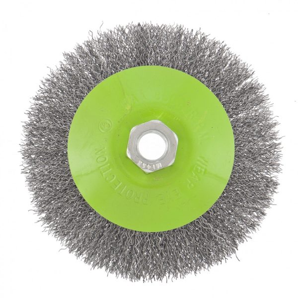 - Быстрая установка и замена насадки — щетка крепится на вал УШМ при помощи гайки М14.