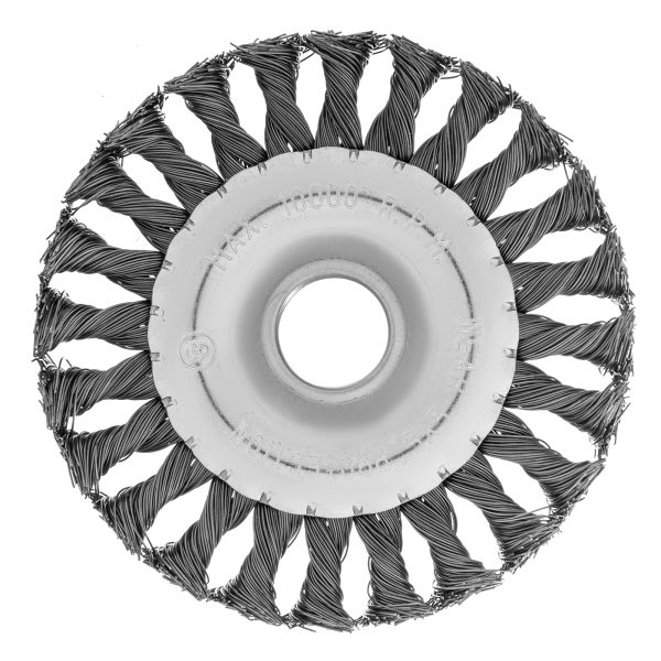 Плоская щетка Matrix 74632 диаметром 125 мм и посадкой 22,2 мм, с щетиной из крученой проволоки толщиной 0,5 мм, устанавливается на вал УШМ, поддерживающей скорость вращения не более 10000 об/мин. Эффективно удаляет загрязнения, толстый слой ржавчины и лакокрасочных материалов с поверхностей, поэтому используется для проведения грубой (черновой) обработки. Плоской щеткой удобно очищать труднодоступные места, в том числе углы и изгибы.