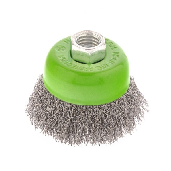 Щетка для УШМ Сибртех «чашка» 746037, М14, диаметром 65 мм, с щетиной из витой проволоки 0,3 мм, предназначена для постепенного снятия тонкого слоя материала с металлических, деревянных и пластиковых поверхностей. Удаляет ржавчину, загрязнения, а также остатки краски и других покрытий. Подходит для обработки участков значительной площади. Щетку устанавливают на вал углошлифовальной машины (УШМ), рекомендуемая максимальная скорость вращения 12500 об/мин. Работать с оснасткой следует в спецодежде.