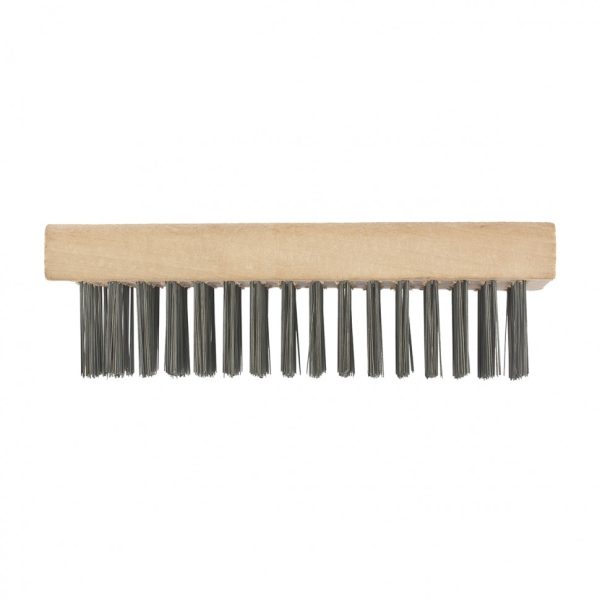 Плоская зачистная 5-рядная щетка Сибртех 74810 с деревянным корпусом и щетиной из закаленной прямой проволоки — ручной инструмент, позволяющий очистить поверхность от заусенцев, загрязнений, ржавчины, остатков штукатурки и лакокрасочного слоя. Расположенный в 5 рядов ворс обеспечивает эффективное воздействие на обрабатываемую поверхность. Щетка подходит для обработки металла, древесины, пластика и сварных швов. Используется в строительстве, авторемонтном деле, будет полезна во время ремонта и в быту.
