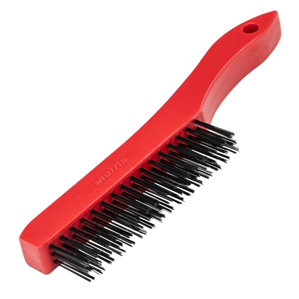 Зачистная трехрядная щетка Matrix 74813 с пластиковой ручкой и щетиной из закаленной прямой проволоки используется для удаления загрязнений, ржавчины, остатков лакокрасочных покрытий с металлических, деревянных, бетонных поверхностей. Пучки расположены в 3 ряда, в каждом пучке 20 щетинок, поэтому щетка выдерживает повышенные нагрузки. Щетка пригодится во время проведения строительных и ремонтных работ, а также будет полезна дома или в гараже.