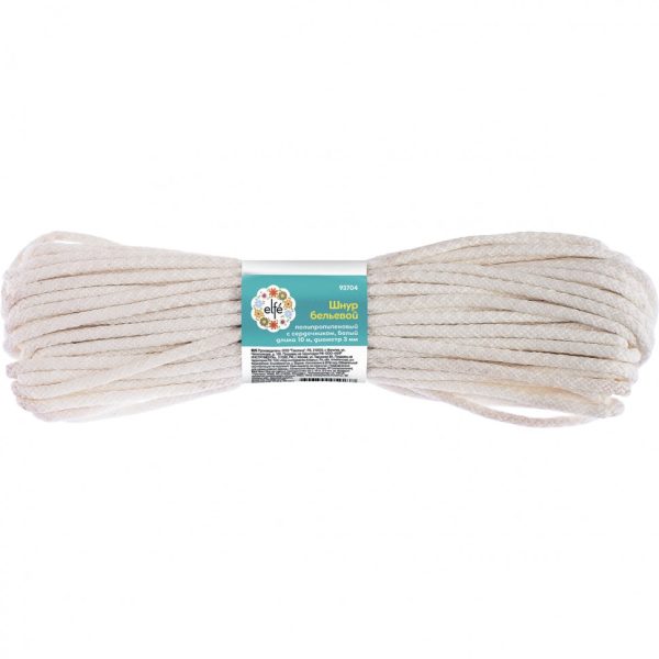 Белый полипропиленовый бельевой шнур Elfe 93706 с сердечником, диаметром 3 мм и длиной 20 м, используется для сушки белья, а также в качестве хозяйственной веревки в быту, на рыбалке или в походе. От обычной бельевой веревки его отличает сердечник из полипропилена, увеличивающий стойкость к нагрузкам. Шнур с полипропиленовой оплеткой выдерживает разрывную нагрузку до 30 кгс, устойчив к растяжению и не провисает под весом мокрых вещей.