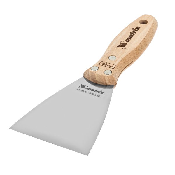 Шпательная лопатка Matrix 85615 с полотном из нержавеющей стали шириной 80 мм и буковой рукояткой предназначена для работы со строительными растворами. Применяется для нанесения различных смесей на поверхности, шпатлевания трещин и неровностей.