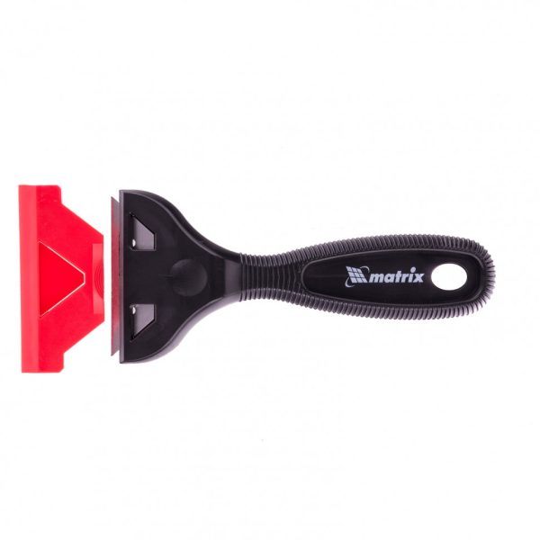 Пластмассовый скребок Matrix 79546 с трапециевидным сменным лезвием — инструмент для очищения гладких поверхностей от загрязнений, остатков краски и других покрытий. Предусмотрена возможность замены лезвия, поэтому в случае износа режущей кромки не нужно приобретать новый инструмент. Скребок используется для выполнения ремонтных и отделочных работ, а также полезен в быту.