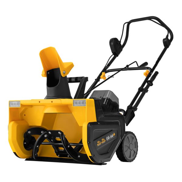 Аккумуляторная снегоуборочная машина Denzel ESB-560Li 97639 с металлическим шнеком и зарядным устройством (ЗУ) в комплекте работает от 2 аккумуляторов 5 А·ч суммарным напряжением 40 В и обеспечивает ширину захвата 560 мм. Дальность выброса снега регулируется при помощи дефлектора и достигает 8 м. Машина не зависит от наличия розетки, что позволяет работать даже на удаленных участках. Снегоуборщик поможет расчистить тротуар, дорожку на дачном участке, площадку перед гаражом или другую небольшую ровную территорию.