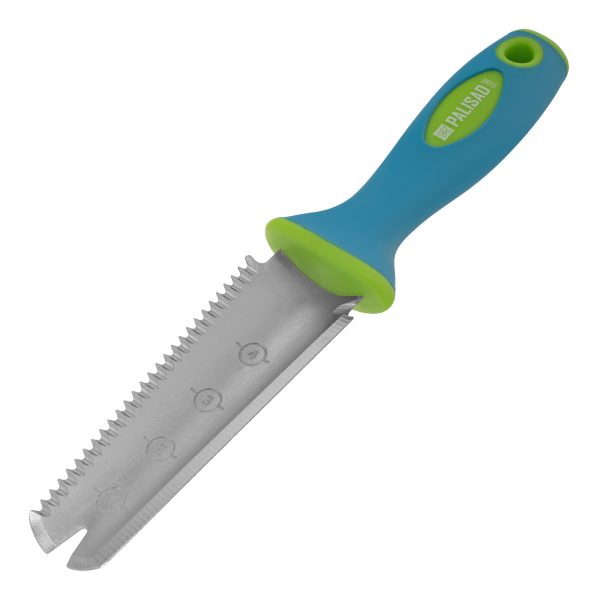 Посадочный совок Palisad LUXE 62070 размером 60 x 285 мм представляет собой многофункциональный инструмент 5 в 1, позволяющий решать различные задачи во время работы в саду и огороде: высаживать и пересаживать растения, обрезать корни, шпагаты и ленты, удалять сорняки. Компактный инструмент с полотном размером 50 x 125 мм удобен для работы на небольших грядках и клумбах.