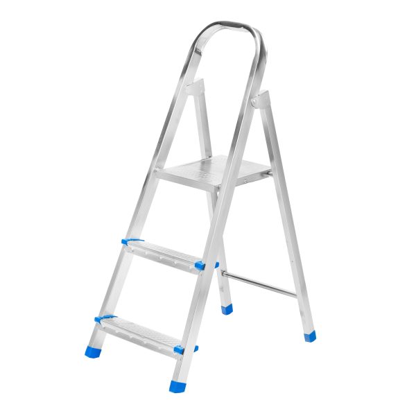 Стальная оцинкованная стремянка Сибртех 97835 с 3 ступенями позволяет повесить полку, картину или шкафчик, достать нужный предмет и решить другие задачи, для которых требуется доступ к предметам на высоте. Рама и ступени из стального профиля выдерживают вес до 120 кг. Расстояние от опорной поверхности до площадки составляет 54 см, при среднем росте пользователя 170 см рабочая высота лестницы — 254 см. Необходимо соблюдать технику безопасности: размещать стремянку только на ровной плоскости и не использовать ее для работы с дрелью, шуруповертом и другим электроинструментом.