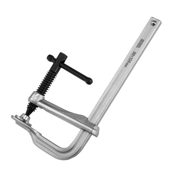 Кованая F-образная струбцина Denzel 20464 с глубиной зажима 80 мм, усиленная, предназначена для фиксации деталей шириной до 150 мм и материалов при проведении слесарных, столярных и сварочных работ. Тавровый профиль обеспечивает устойчивость конструкции к изгибу, что позволяет фиксировать детали со значительным усилием. Струбцина подходит для профессионального применения.