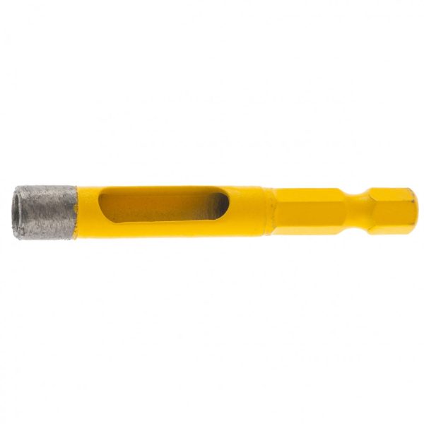 Алмазное сверло Denzel 726737 размером 8 х 35 мм, с шестигранным хвостовиком, — режущий инструмент для получения точных отверстий диаметром 8 мм. Подходит для работ по стеклу, керамике, а также керамограниту и мрамору. Используется в качестве оснастки для дрелей и шуруповертов. Сверление с применением водяного охлаждения позволит избежать перегрева сверла и продлить срок его службы. Использование кондуктора 72833 препятствует смещению коронки и облегчает засверливание. Оснастка предназначена для профессионального использования.