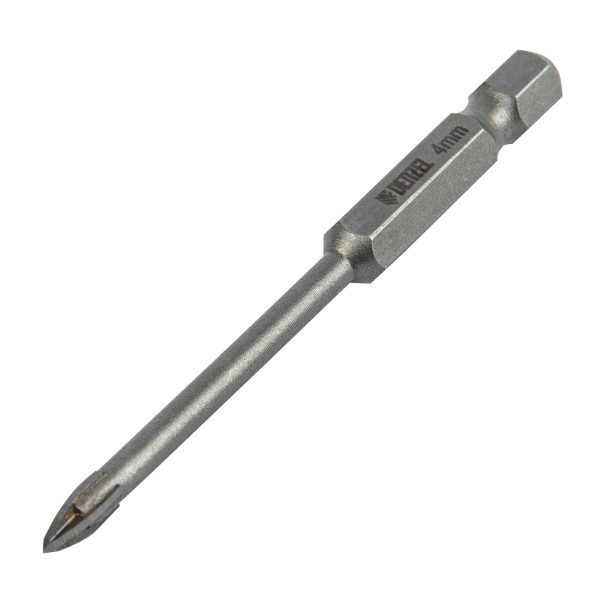 Сверло Denzel 728023 диаметром 4 мм, с крестовой пластиной и шестигранным хвостовиком, используется для сверления керамической плитки, стекла и других материалов с помощью дрели или шуруповерта. Четырехкромочная режущая пластина обеспечивает высокую скорость засверливания. Оснастка выдерживает высокие нагрузки и подходит для интенсивного профессионального использования.