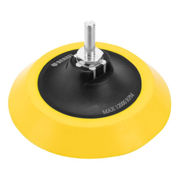 Тарелка опорная Denzel 76248 диаметром 125 мм, с липучкой и адаптером с М14 на d8, мягкая, устанавливается на дрель или углошлифовальную машину (УШМ). Используется для крепления абразивных или полировальных кругов на ворсовой основе, позволяет подготовить поверхность для дальнейшей обработки или придать ей финишную гладкость.