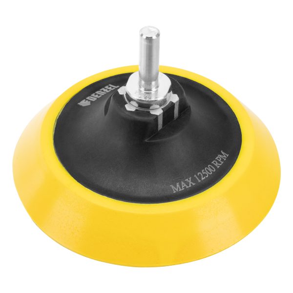 Тарелка опорная Denzel 76247 диаметром 115 мм, с липучкой и адаптером с М14 на d8, мягкая, устанавливается на дрель или углошлифовальную машину (УШМ). Используется для крепления абразивных или полировальных кругов на ворсовой основе, позволяет подготовить поверхность для дальнейшей обработки или придать ей финишную гладкость.