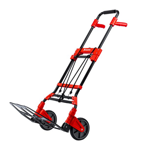 - Удобное хранение и транспортировка — платформа и колеса складываются, поэтому тележка не занимает много места.