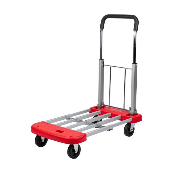 - Удобное хранение и транспортировка — благодаря телескопической платформе тележка не занимает много места.
