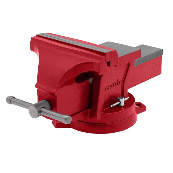 Поворотные слесарные тиски Matrix 18603 с наковальней и губками шириной 200 мм имеют рабочий ход 175 мм и предназначены для захвата и фиксации различных деталей. Поворотный механизм с прижимными винтами позволяет вращать тиски на 360° и фиксировать их в выбранном положении для удобной обработки заготовок с разных сторон. Инструмент используется для шлифовки, сверления и проведения других работ. Будет полезен в мастерской и гараже.