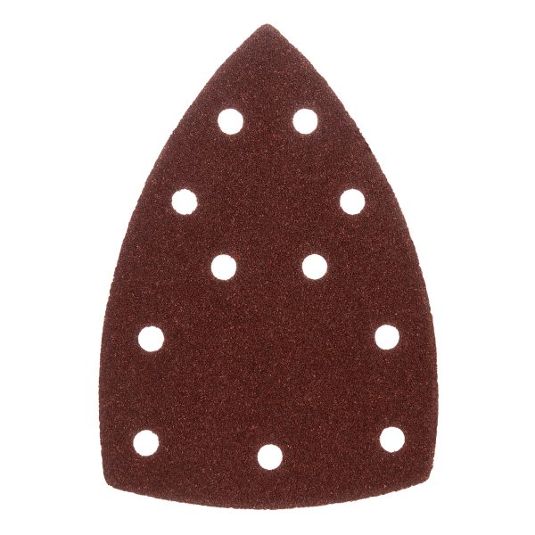 Абразивный перфорированный треугольник на ворсовой подложке «под липучку» Denzel 738587 размером 150 х 150 х 100 мм, 5 шт. в упаковке, имеет зернистость P 60 и предназначен для черновой обработки металлических, деревянных и других поверхностей. Позволяет удалять заусенцы, старые лакокрасочные покрытия и ржавчину, удобен для работы в углах и других труднодоступных местах. Треугольник совместим с плоскошлифовальной машиной Denzel 27614, также подходит для установки на другие шлифмашины с размером рабочей платформы 150 х 150 х 100 мм.