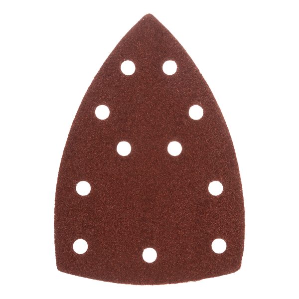 Абразивный перфорированный треугольник на ворсовой подложке «под липучку» Denzel 738617 размером 150 х 150 х 100 мм, 5 шт. в упаковке, имеет зернистость P 100 и предназначен для промежуточной обработки металлических, деревянных и других поверхностей. Позволяет удалять заусенцы, старые лакокрасочные покрытия и ржавчину, удобен для работы в углах и других труднодоступных местах. Треугольник совместим с плоскошлифовальной машиной Denzel 27614, также подходит для установки на другие шлифмашины с размером рабочей платформы 150 х 150 х 100 мм.