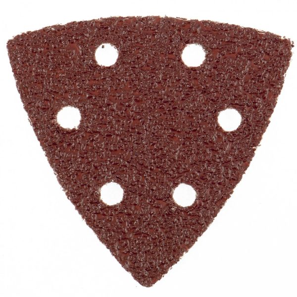 - Перфорация способствует отводу пыли и более эффективной обработке материалов без риска их повреждения, а также увеличивает срок службы треугольника.