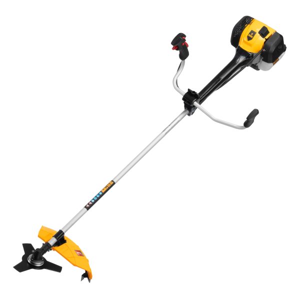 Надежный двухтактный двигатель мощностью 2,5 л.с. обеспечивает скорость вращения оснастки 9500 об/мин, благодаря чему триммер эффективно борется с густой травой. Редуктор и корпус сцепления поставляются уже установленными на штангу, что упрощает процесс финальной сборки инструмента.