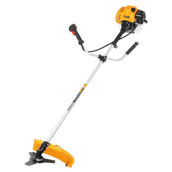 Бензиновый триммер Denzel DTS-52 962155 с двигателем объемом 52 куб. см и неразъемной штангой поставляется комплектом из 2 частей. Усиленная катушка с леской предназначена для скашивания мягкой травы, а трехлопастный нож — для скашивания травы различных типов, в том числе с жесткими стеблями (полыни, крапивы, лебеды). Ширина скашивания леской составляет 42 см, ножом — 25,5 см.,Двухтактный бензиновый двигатель мощностью 3 л.с. обеспечивает эффективное решение поставленных задач и полную автономность. Работать можно даже в самых отдаленных участках сада, не заботясь о наличии сети электропитания.