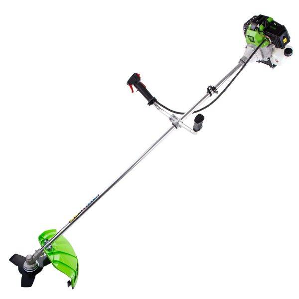 - Защита от летящей травы и веток — на штанге надежно закреплен прочный пластиковый кожух.