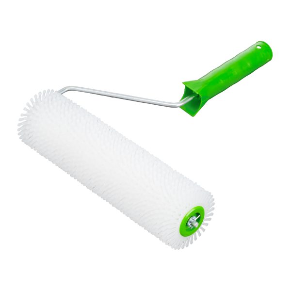 Игольчатый валик Сибртех 81101 длиной 240 мм, с ручкой, используется для монтажа наливных полов. Позволяет удалять пузырьки воздуха из толщи еще жидкого покрытия путем его интенсивного прокатывания по распределенному на поверхности основы раствору. Валик длиной 240 мм можно использовать в узких местах и углах. Длина иголок 13 мм оптимальна для покрытий небольшой толщины.