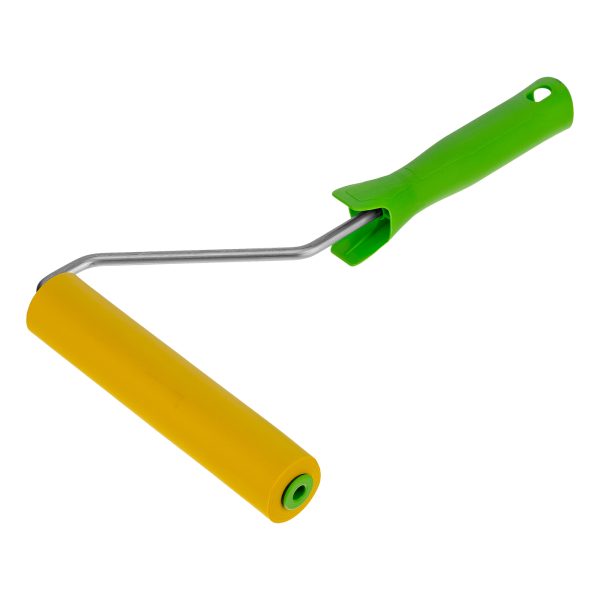Резиновый прижимной валик Сибртех 81033 длиной 150 мм, с ручкой диаметром 6 мм, используется для ремонтно-строительных работ. Подходит для наклеивания всех видов обоев, а также других тонких листовых материалов. Позволяет быстро и равномерно разгладить полотно на стыках, удалив пузырьки воздуха.