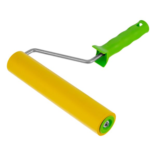 Резиновый прижимной валик Сибртех 81035 длиной 240 мм, с ручкой диаметром 8 мм, используется для ремонтно-строительных работ. Подходит для наклеивания всех видов обоев, а также других тонких листовых материалов. Позволяет быстро и равномерно разгладить полотно на стыках, удалив пузырьки воздуха.