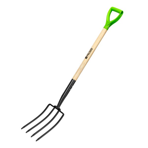 4-рогие огородные вилы Palisad 61394 размером 195 x 295 x 1165 мм, с кованой рабочей частью и деревянным лакированным черенком, предназначены для вскапывания и рыхления почвы, аэрации грунта, а также для выкапывания корнеплодов. Незаменимы для выполнения сельскохозяйственных работ на приусадебном участке.
